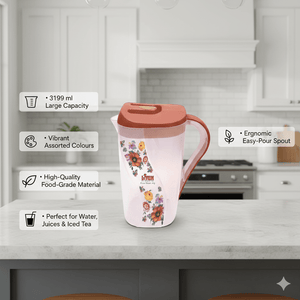 Introducing the Water Jug Flora, a perfect blend of functionality and elegance designed to elevate your hydration experience. With an impressive capacity of 3199 ml, this jug is ideal for serving beverages at family gatherings, outdoor picnics, or everyday use. The Water Jug Flora is crafted to provide both convenience and style, making it a must-have addition to your kitchenware collection.